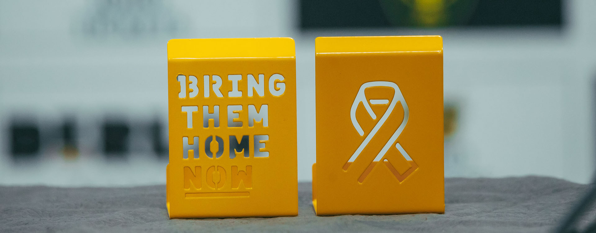 לצד המעמדים ניתן למצוא 8 נרות צהובים עבור כל אחד מימי החג. הציבור מוזמן לתרום, לקבל את המארזים ולעזור לכולנו להאיר את הדרך הביתה.
