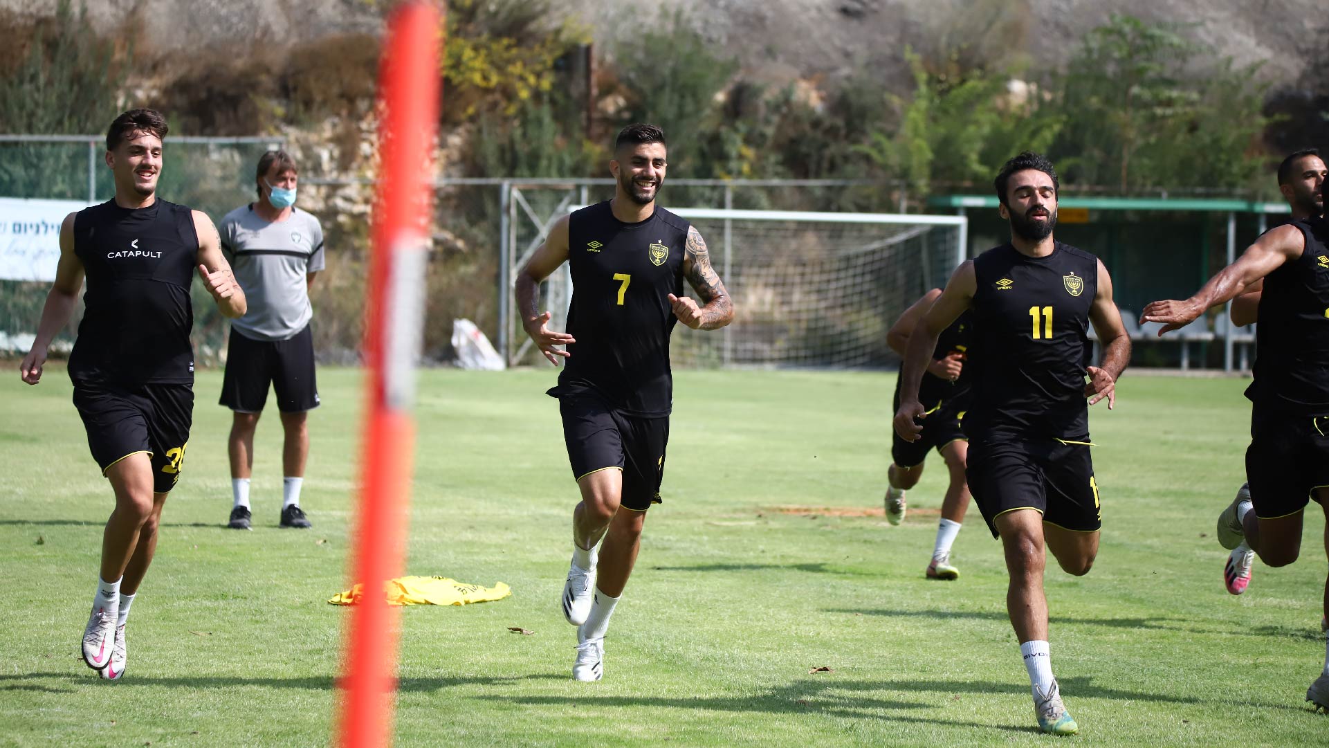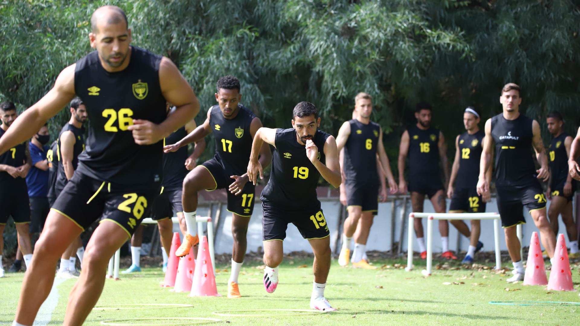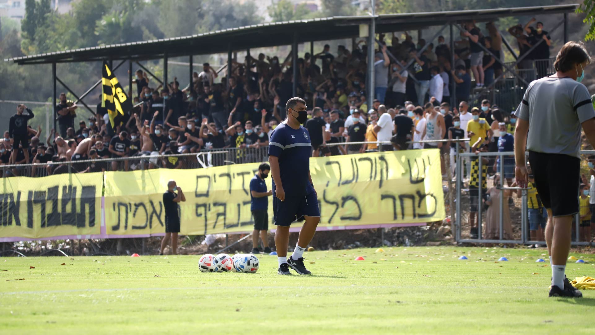 השחקנים כמובן הגיעו והודו לאוהדים ואז גם התפנו לסגור את ההכנה לקראת מחר. הרבה מאוד תרגולים טקטיים נעשו היום, כאשר צמד המאמנים שלנו בוחנים מספר הרכבים אפשריים. האוהדים במתחם זכו לצפות גם במתאוסיניו, ירדן שועה וסנטי אוקמפוס עובדים יחד עם הקבוצה בתרגולי הגבהות ובעיטות מרחוק לשער.
