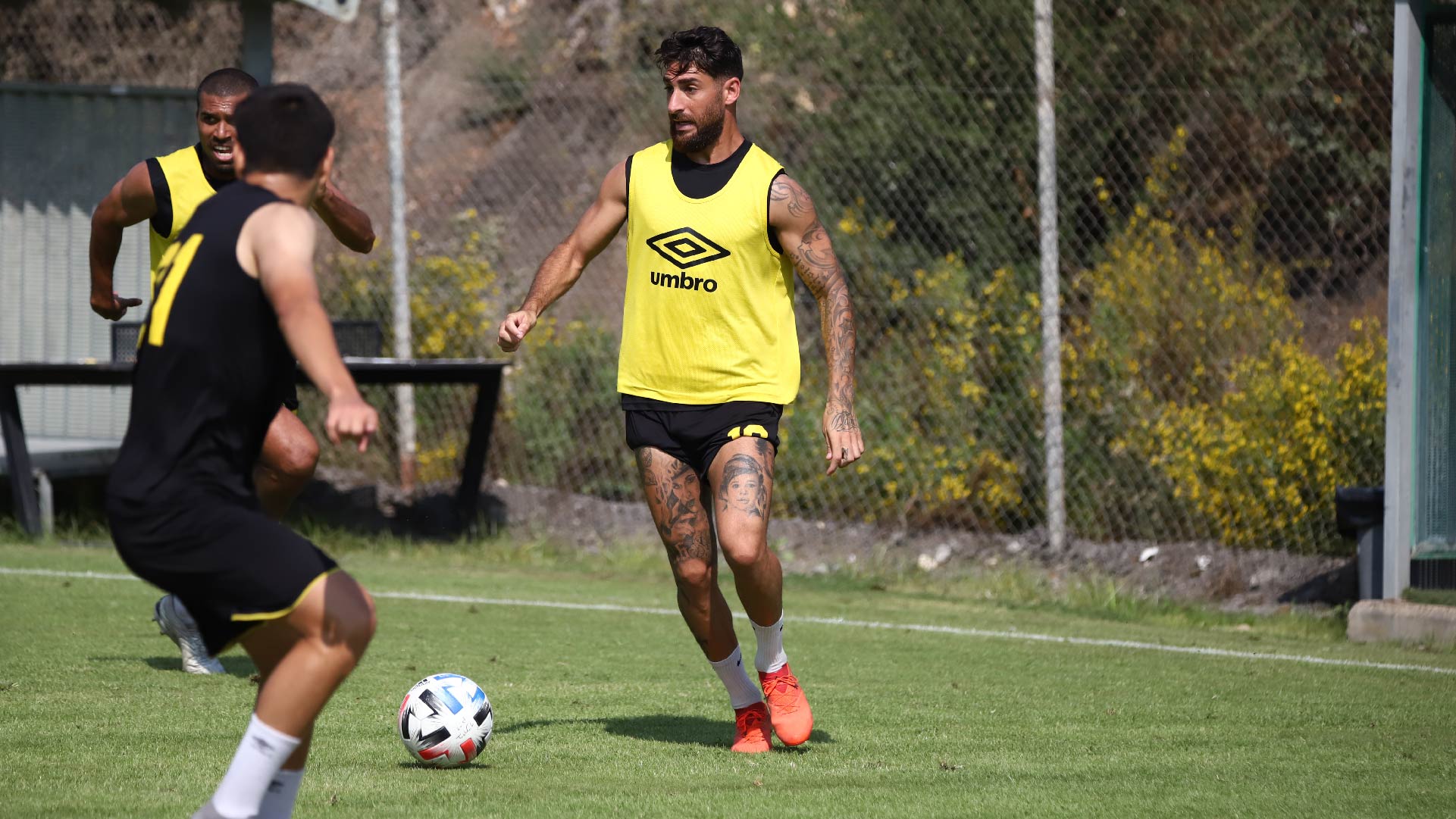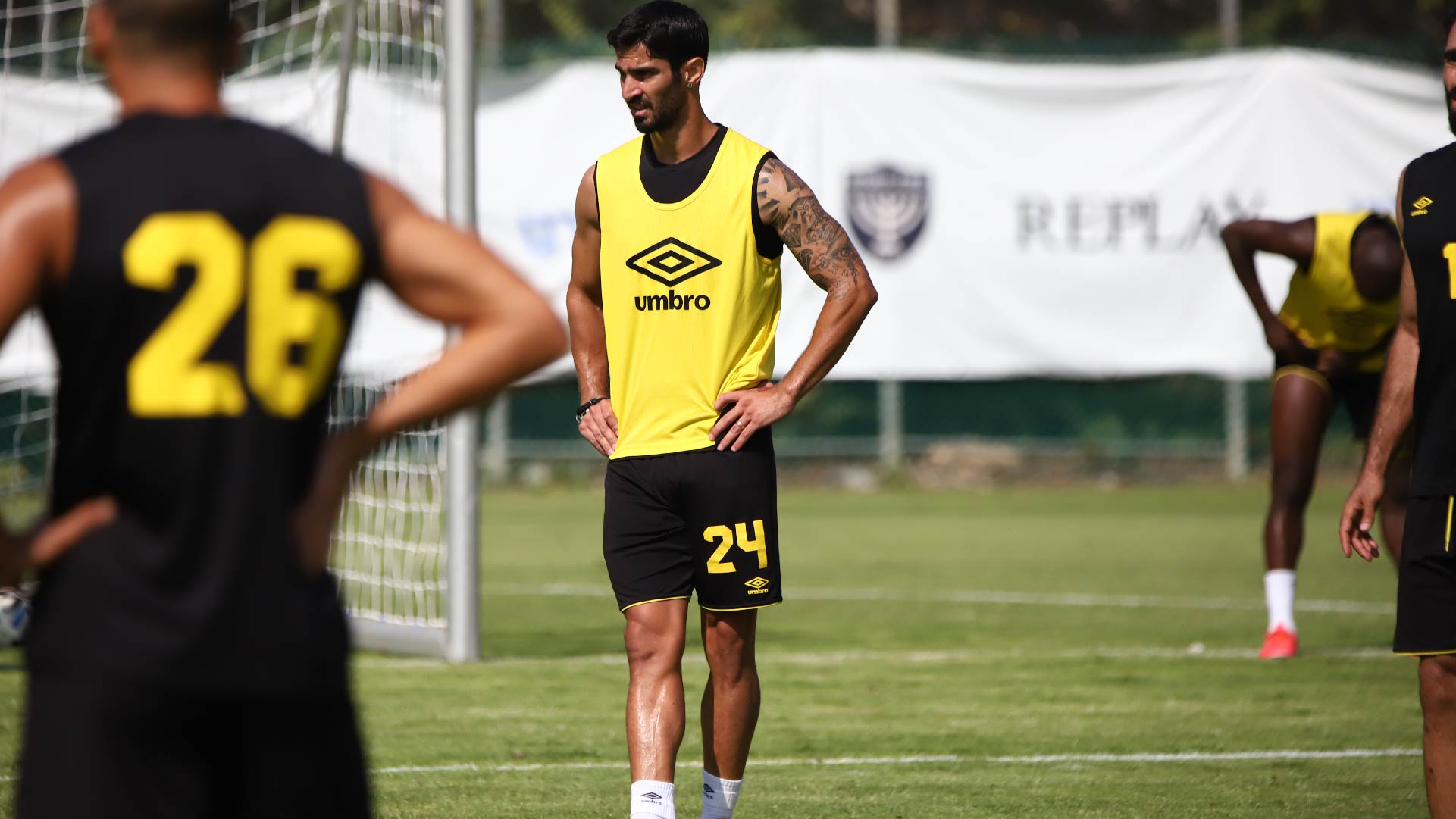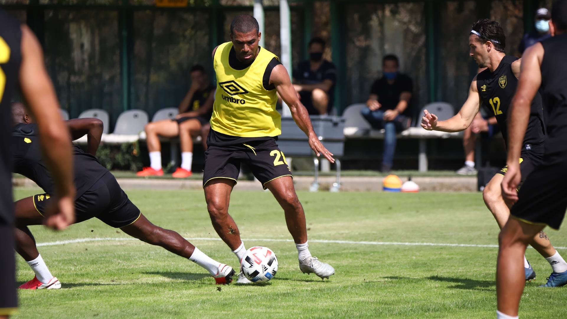 השחקנים כמובן הגיעו והודו לאוהדים ואז גם התפנו לסגור את ההכנה לקראת מחר. הרבה מאוד תרגולים טקטיים נעשו היום, כאשר צמד המאמנים שלנו בוחנים מספר הרכבים אפשריים. האוהדים במתחם זכו לצפות גם במתאוסיניו, ירדן שועה וסנטי אוקמפוס עובדים יחד עם הקבוצה בתרגולי הגבהות ובעיטות מרחוק לשער.
